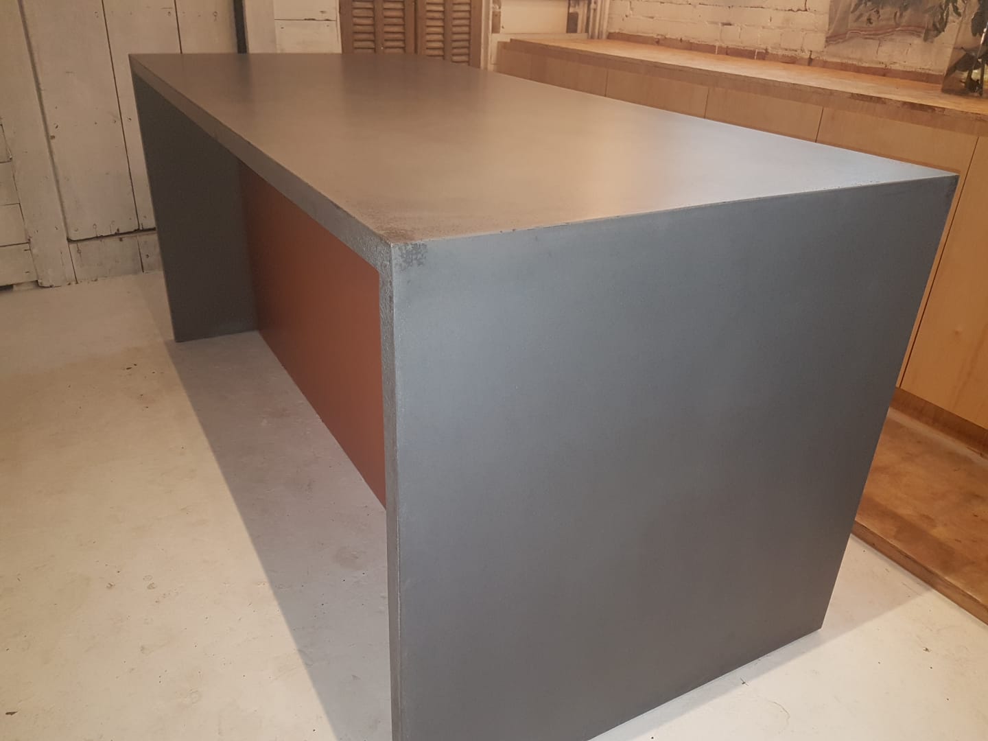 Not all microcements are completely waterproof, the natural minerals in the mix make them very porous. The microcements are sealed to make them waterproof. Which means that if the sealer gets scratched or there isn’t sufficient coverage of it, then water can get to the microcement and stain it.